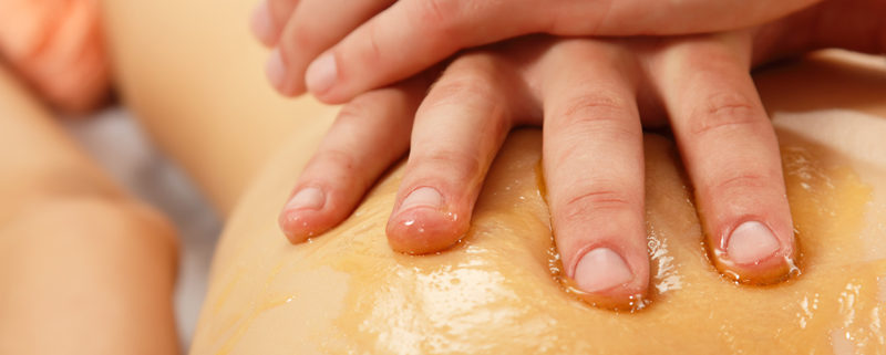 A masszázs natúr mézzel történik,. Mézzel szembeni allergia esetén nem alkalmazható ez a kezelés!!! Először olajos masszázs történik, A mézes masszázs lényege, hogy a méz testre történő felvitele után speciális technikával rányomjuk a kezünket a mézes bőrfelületre. A tenyérrel erős vákuumot képzünk, így fel tudjuk emelni a bőrt. Ezáltal az erős vákum miatt, a kezelt területen fokozódik a vérbőség, kitágulnak a pórusok, így a méz, és a benne lévő víz, ásványi anyagok, enzimek, vitaminok…stb bejut a bőrbe.